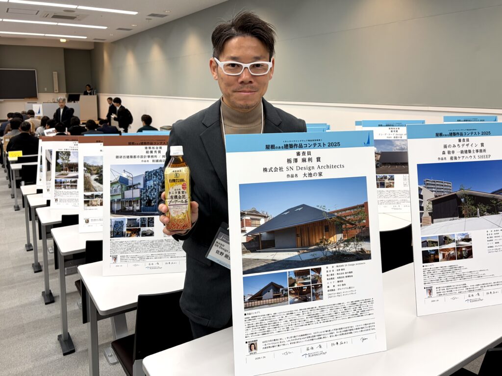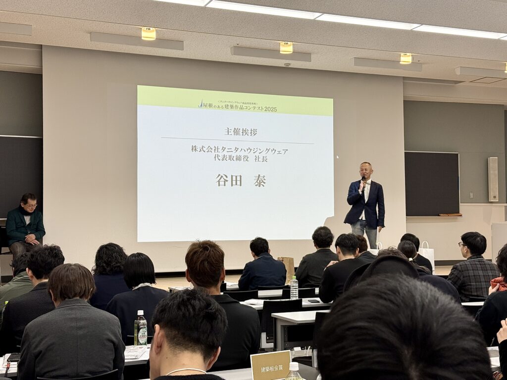 先日、タニタハウジング社が主催する屋根のある建築作品コンテスト2025の授賞式へ参加してきました。